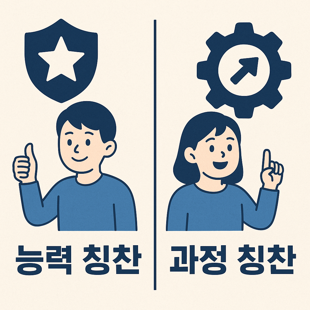 - 과정·전략: 노력·계획·집중·지속·협력 등 통제 가능한 요인을 칭찬.