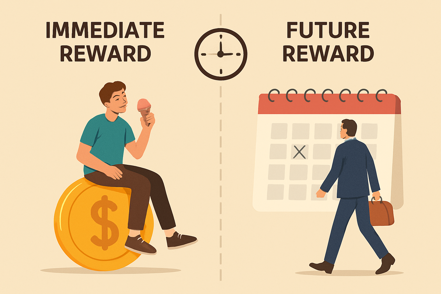 저축은 내일부터, 다이어트는 다음 주부터, 공부는 시험 일주일 전부터. 우리의 결심이 번번이 ‘지금 당장’이 아닌 ‘미래의 나’에게 떠밀리는 이유는 무엇일까요? 언뜻 의지 부족처럼 보이지만, 그 배경에는 인간 보편의 의사결정 메커니즘, 즉 시간할인이 작동하고 있습니다. 지금 받는 1만 원과 1년 뒤 받는 1만 원은 회계상으론 같아도, 심리적 가치는 다릅니다. 지금의 즐거움은 선명하고 달콤하며, 미래의 이득은 흐리고 멀게 느껴집니다. 이 차이가 삶의 수많은 선택을 바꿉니다.